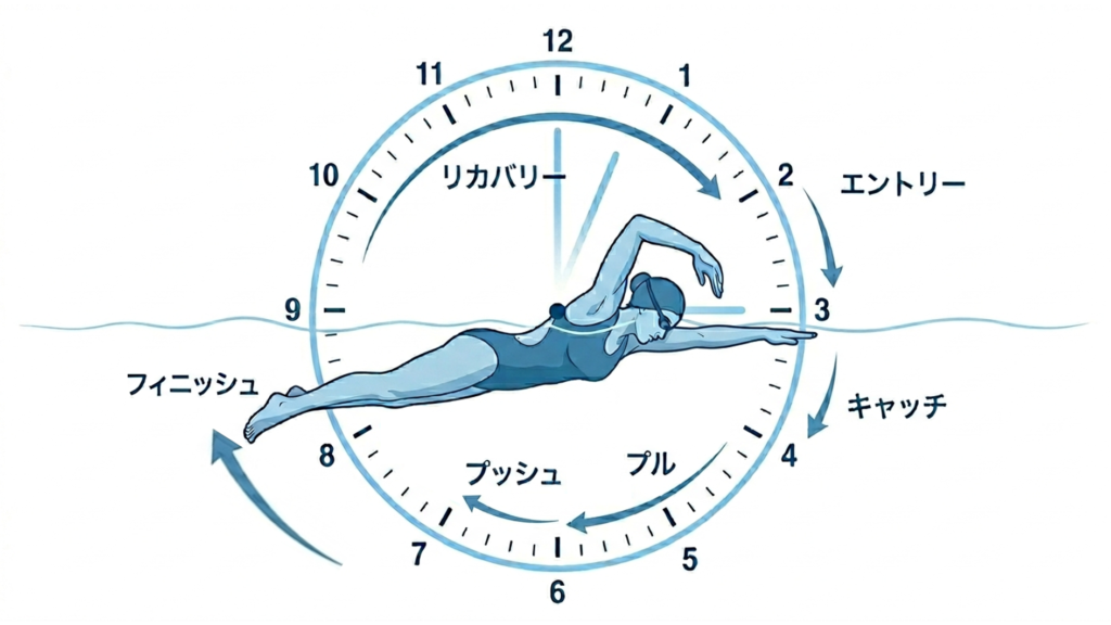 クロールのストロークは以下の5つの局面に分けることができ、Maglischoらの研究においてもこの考えは採用されています。