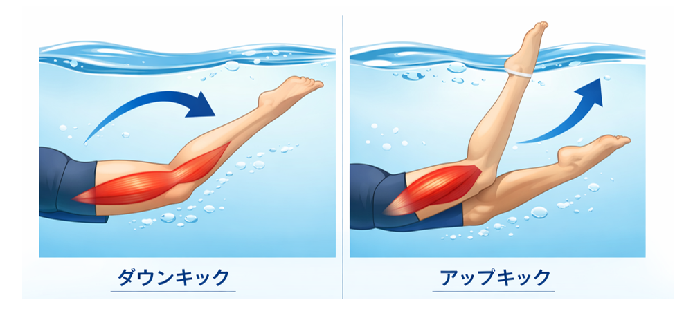 ・上下ともに軽く力を使う←アップキックで力を抜くとリズムが壊れてしまう